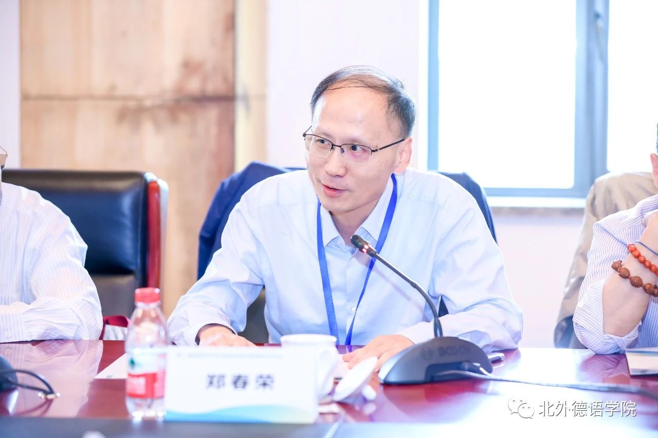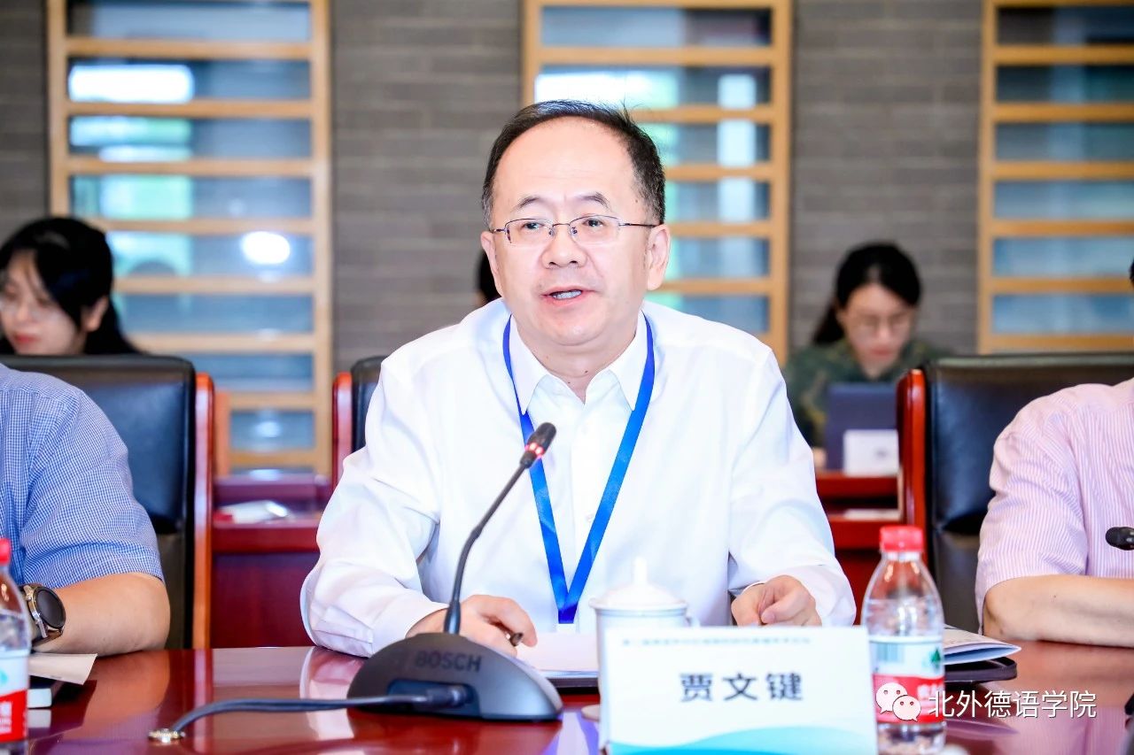 北外党委副书记、副校长,外指委德分委主任委员贾文键出席论坛开幕式并致辞。开幕式环节由北外yabo鸭脖官网党总支书记、院长,外指委德分委秘书长吴江主持。