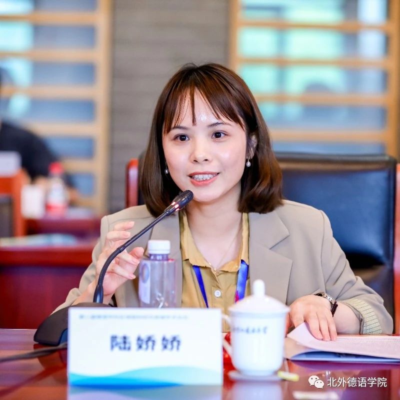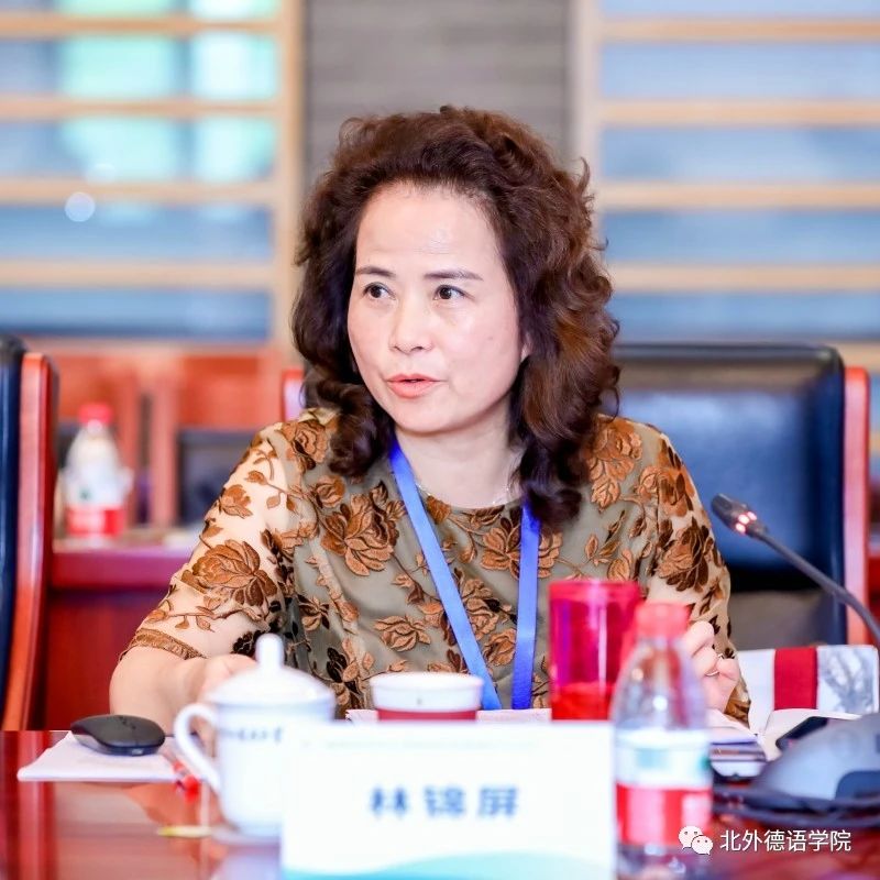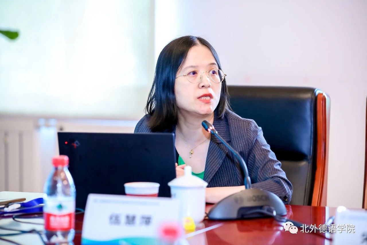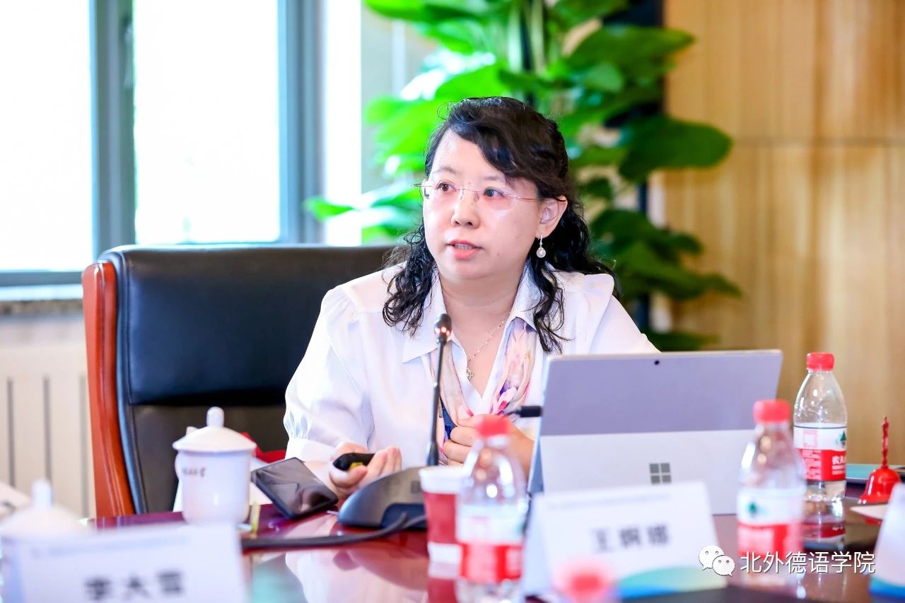 “教学教法与创新实践”主题研讨环节由北外yabo鸭脖官网研究生教研室主任陆娇娇主持。云南大学地球科学学院研究员林锦屏基于班杜拉社会认知理论,运用结构方程模型构建大学生线上自主学习效果模型,探讨了如何培养与挖掘大学生的学习潜力与创新能力以及如何提升大学生线上自主学习效果和教学质量。南京大学外国语学院德语系主任陈民以“拉贝日记与和平城市”团队的发展为例,分享了“知行合一”的教育创新案例。北外yabo鸭脖官网基础教研室主任李婧以新近出版的《新经典德语》教材为例,探讨了本科基础阶段教材融入国情与文化的思路与路径。北外yabo鸭脖官网党总支委员、本科教学秘书于芳分享了“理解当代中国”系列教材融入国别区域方向专业知识课程的实践与思考。北外yabo鸭脖官网本科一年级教学组长葛囡囡以日本德语教材为例,从符号学视角对呈现文化的图像及其与相关文字之间的关系以及图像发挥的作用进行了分析。在交流环节,与会嘉宾纷纷点赞全国高校德语学科点的创新实践以及教材建设成果。