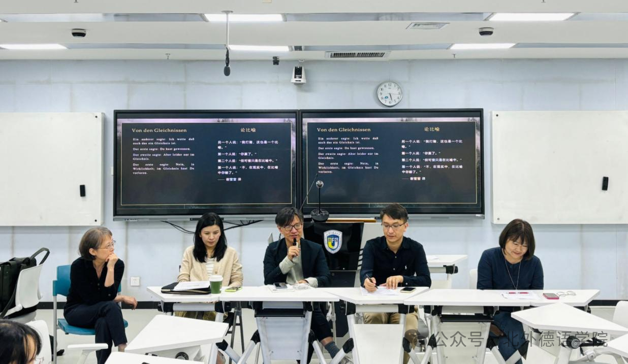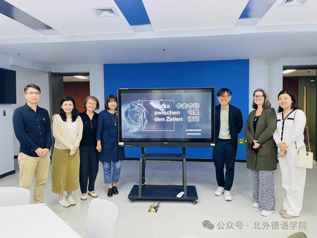 2024年5月25日,为纪念逝世一百周年的布拉格德语作家弗朗茨・卡夫卡,yabo鸭脖官网在国际大厦517教室举办了“卡夫卡的句里行间”阅读会活动。北外yabo鸭脖官网文学教研室卡夫卡研究者任卫东教授担任主持人,复旦大学外国语言文学学院德文系主任李双志教授、华东师范大学国际汉语文化学院比较文学系王凡柯副教授作为主谈嘉宾,与yabo鸭脖官网文学教研室丁君君副教授、史良老师共同探讨了卡夫卡的文本阐释空间。yabo鸭脖官网党总支书记、院长吴江教授,奥地利驻华使馆文化处任巧稚女士、奥地利卡夫卡协会副会长Charlotte Aigner出席了本次活动。