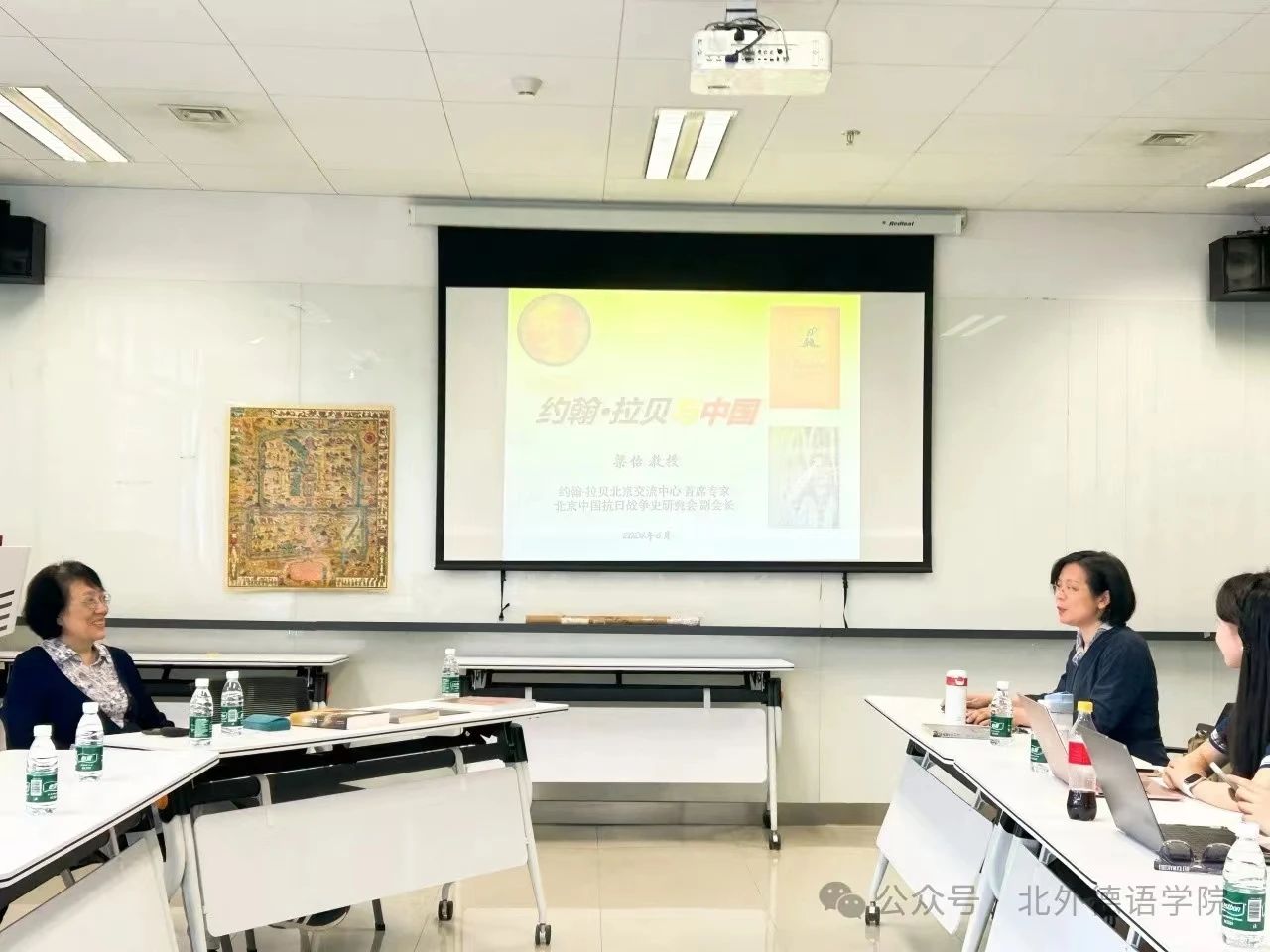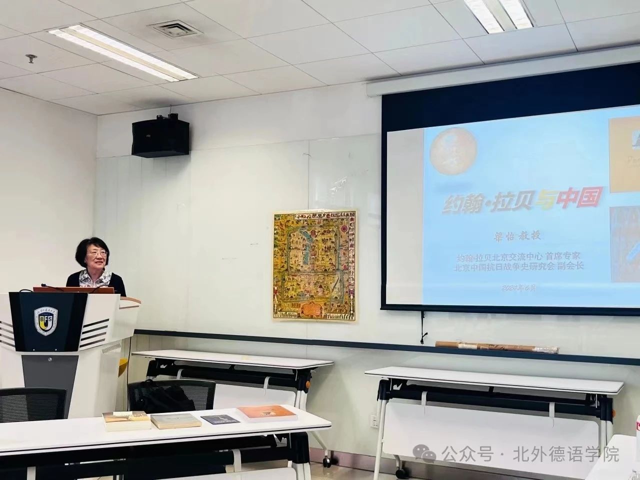 2024年6月13日下午,北京联合大学人文社科部原主任梁怡教授应邀为北外yabo鸭脖官网师生做题为“约翰·拉贝与中国”的讲座。本次报告会系yabo鸭脖官网人文社科通识系列讲座之一,讲座由yabo鸭脖官网书记、院长吴江主持。