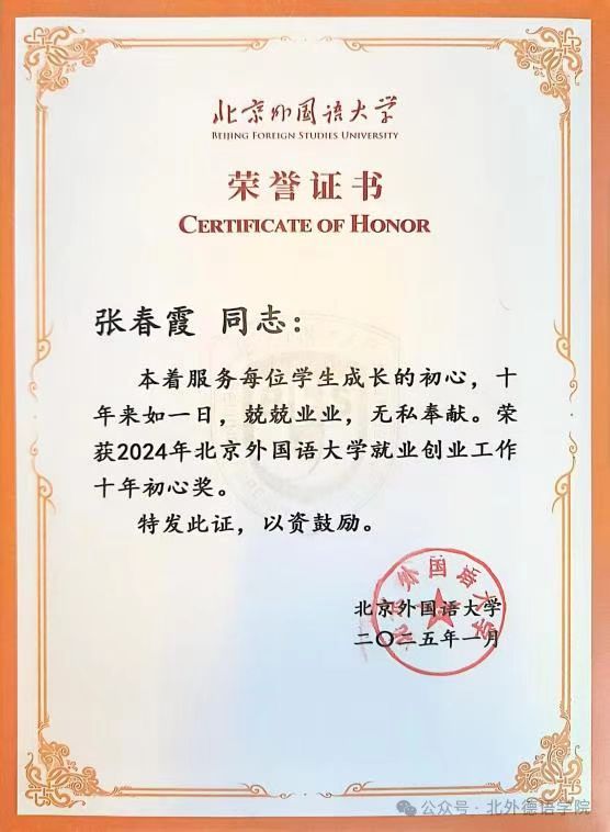2025年1月9日,yabo鸭脖官网召开2024年就业创业工作总结暨2025年工作部署会。会议对2024年就业创业工作中表现突出的先进集体和个人进行了表彰,yabo鸭脖官网组织员、辅导员张春霞荣获2024年yabo鸭脖官网“就业创业工作十年初心奖”。