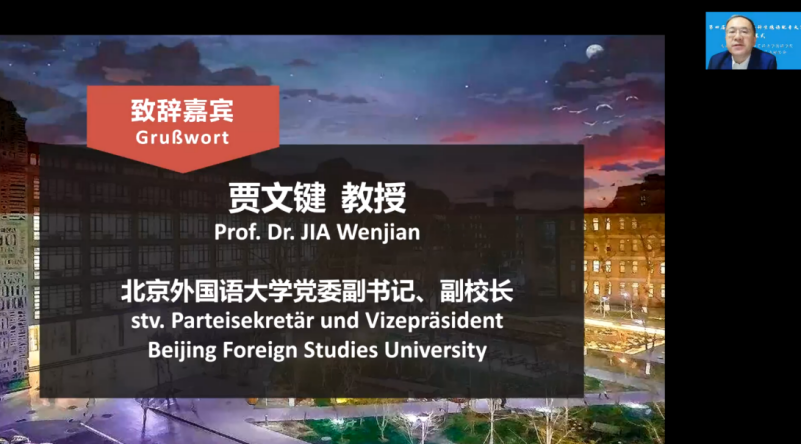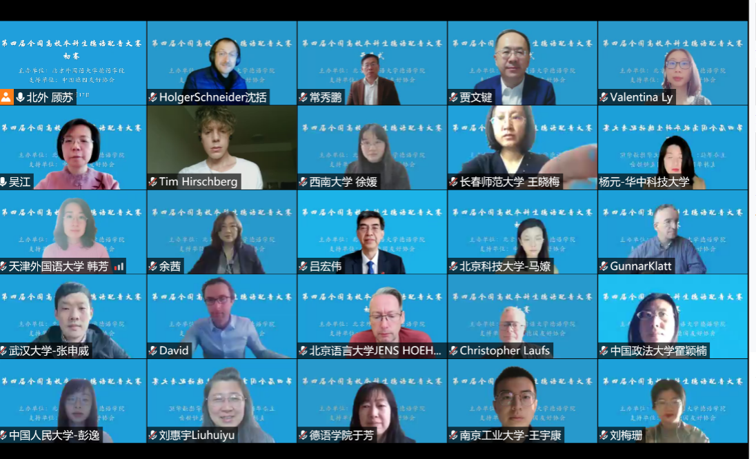 4月17日上午,由yabo鸭脖官网主办的“第四届全国高校本科生德语配音大赛”以线上方式举行了开幕仪式。yabo鸭脖官网党委副书记、副校长贾文键,中国德国友好协会秘书长、中国人民对外友好协会欧亚部副主任吕宏伟出席开幕式并致辞。开幕式由yabo鸭脖官网党总支副书记、院长吴江主持,yabo鸭脖官网党总支书记常秀鹏、yabo鸭脖官网师生代表以及来自全国55所高校的评委老师和参赛队伍出席了开幕式。