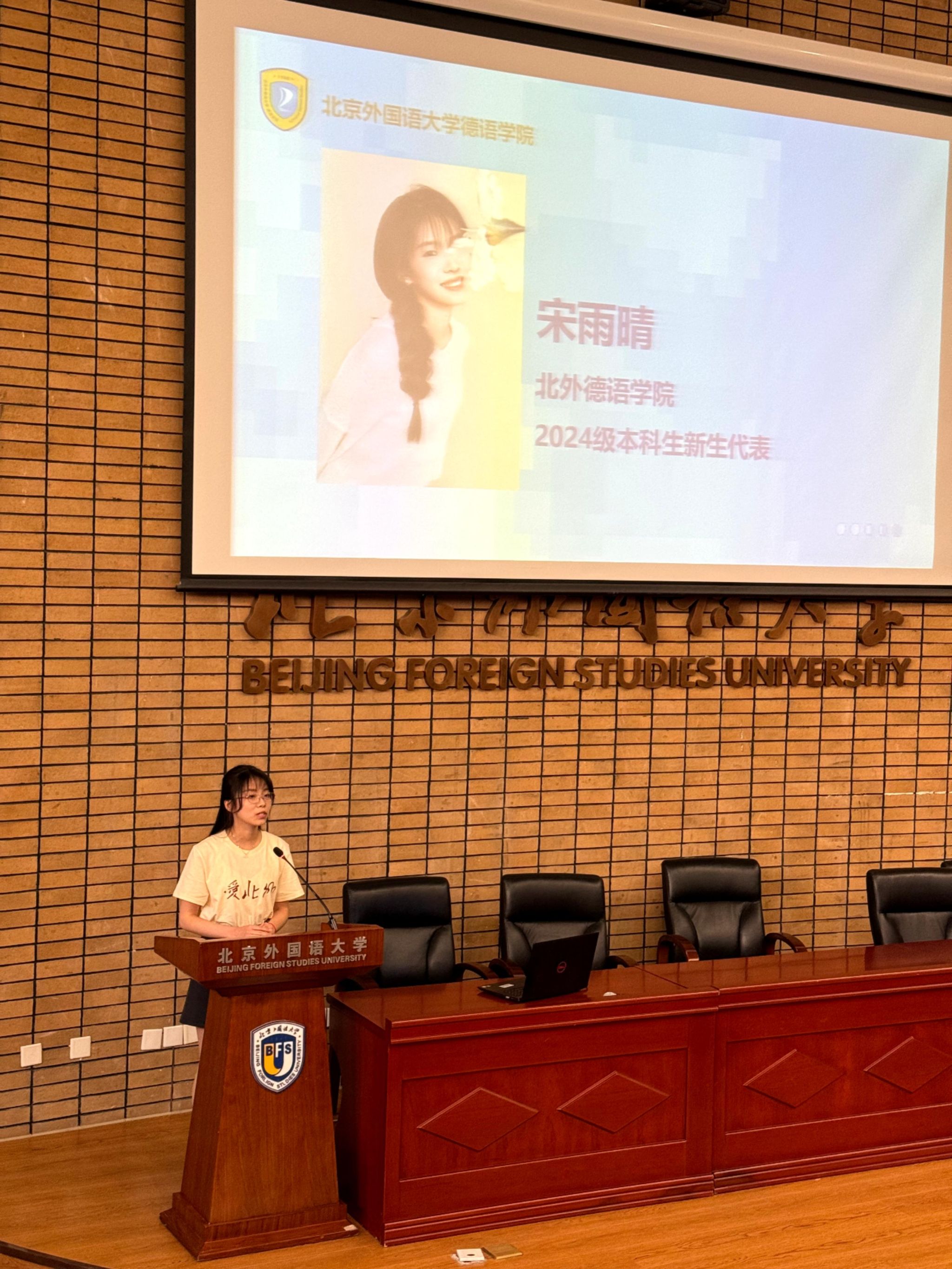 2024级本科新生代表宋雨晴同学从收到录取通知书的喜悦讲起,谈到当今局势和未来发展,强调了yabo鸭脖官网人的历史使命。她表示,大家怀揣着对外语的热爱相聚于此,未来更应风雨兼程、共创辉煌。