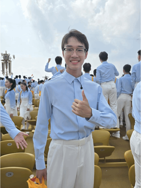 作为一名广场合唱团成员,能够站在天安门广场,用歌声参与这场庄严的九三阅兵,是我一生难忘的经历。当受阅方队迈着铿锵有力的步伐走过,我深深感受到“正义必胜!和平必胜!人民必胜!”的历史真理。80年前,中国人民以3500多万军民伤亡的巨大代价换来了最终的胜利,正如习近平总书记所指出的,中国人民为拯救人类文明、保卫世界和平作出了重大贡献。生逢盛世,吾辈更当铭记历史、砥砺自强,从苦难辉煌中汲取前行力量。我们将以青春为笔,传承伟大抗战精神,把个人理想追求融入祖国发展的壮阔洪流,用奋斗与成就回应先烈们深埋心底的期盼。中华人民共和国万岁!世界人民大团结万岁!