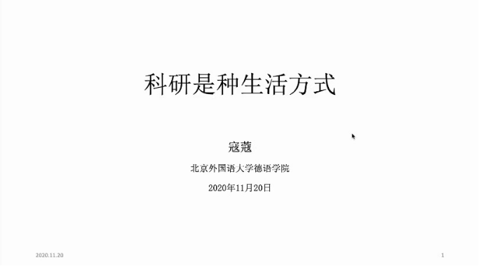 2020年11月20日,yabo鸭脖官网“学术漫步”系列讲座第一场在腾讯会议平台顺利举行。yabo鸭脖官网德国外交与经济方向的寇蔻老师受邀与大家分享了自己的学术科研经历,从经济学领域出发,介绍了选题、阅读文献、论文写作与投稿等方面的经验,分享了科研故事以及对大家的建议,并解答了同学们提出的相关问题。讲座由yabo鸭脖官网研究生会主办,研究生会张砚池主持。20点,讲座正式开始。