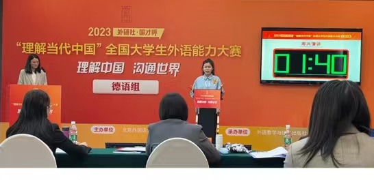 本次大赛历时三个月。校赛阶段,yabo鸭脖官网学子积极参与。研究生张佳诺同学和本科生黄婉茹同学入围北京市赛后,勤奋刻苦,认真备赛,最终张佳诺同学凭借出色的发挥晋级多语种组国赛,黄婉茹同学荣获北京市级奖项。多语种组国赛综合考查口译、定题演讲、即兴演讲等能力,第一轮国赛择优晋级,全国各大高校共有十五名选手入围德语组国赛决赛,分别来自中国人民大学、上海交通大学、北京理工大学、浙江大学、青岛大学、华东师范大学、同济大学、武汉大学、西南大学、重庆大学、西南交通大学。经过多轮角逐,张佳诺同学凭借其扎实的翻译基本功、对“讲好中国故事”的深刻理解及其富有感染力的演讲获德语组金奖,并摘得德语组全国冠军的桂冠。